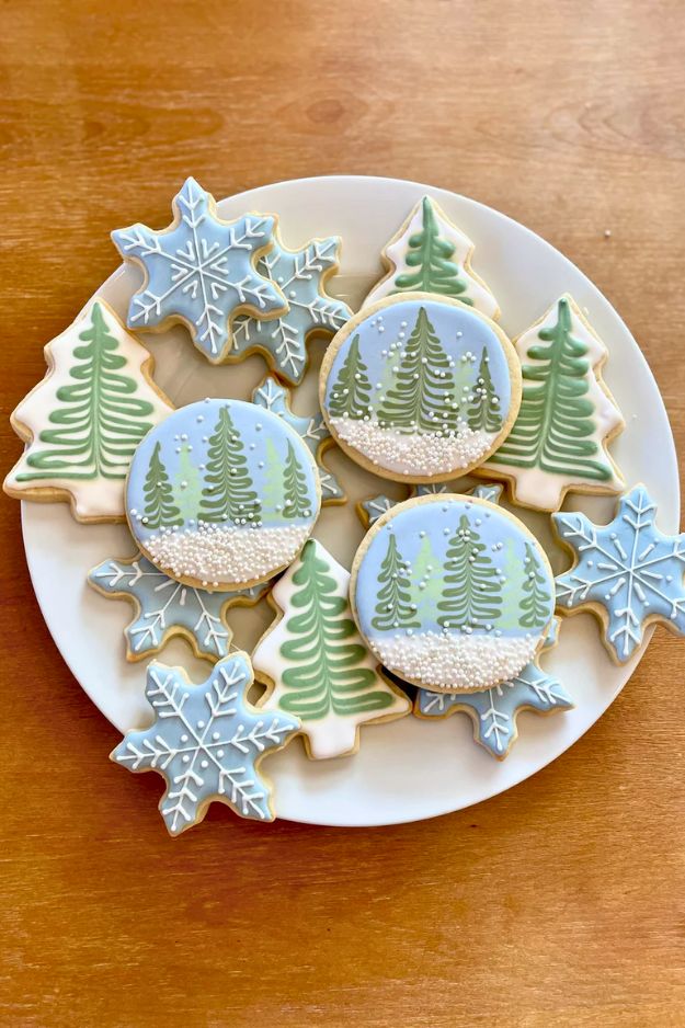 These cookies made me rethink holiday colors completely. I never thought muted tones could feel this wintry, but they make the little snow scenes look so calm and pretty. The tree technique is so simple but genius, just zig-zag icing and a quick toothpick pull to get that soft marbled look. And the tiny pearls as snow are adorable. BY SamanthaD77