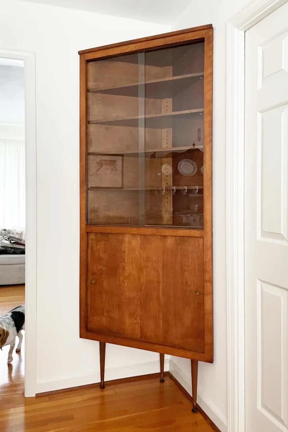 I’m seriously obsessed with this antique corner piece that u/CapsuCraft’s dad built way back in the 60s. It’s a tall unit that offers tons of storage, but those skinny legs make it look like it’s just floating against the wall. I love that the sliding glass doors keep your favorite things on display without them getting dusty or knocked over.