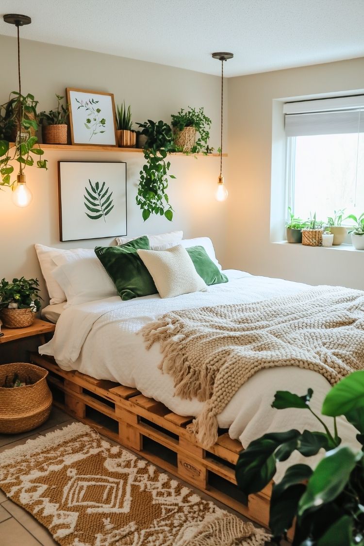 If you’re working on a budget, swapping a traditional frame for a pallet bed is an easy win. I’ll be honest, I’m not usually the biggest fan of pallets, but there’s no denying they can look ridiculously cozy. Add in the right lighting and a few plants, and suddenly the whole basement feels more alive, fresh, and inviting.