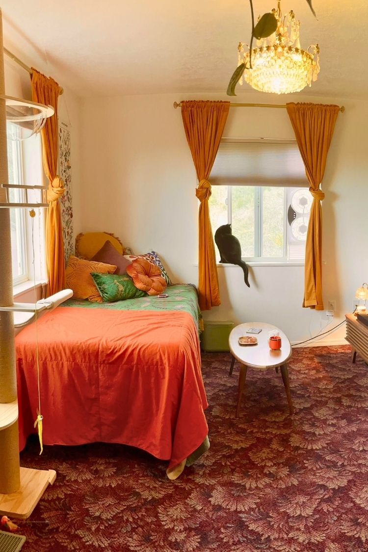 Honestly, u/No_Excitement4272’s basement bedroom might be the coziest one I’ve seen yet, the whole palette has that quirky, cinematic vibe that reminds me of a Wes Anderson movie. The mint and orange accents play beautifully together, and the vintage fridge paired with grandma’s chandelier anchors the retro theme so perfectly. I can already picture how much warmer it’ll get once more plants and shelves come in.