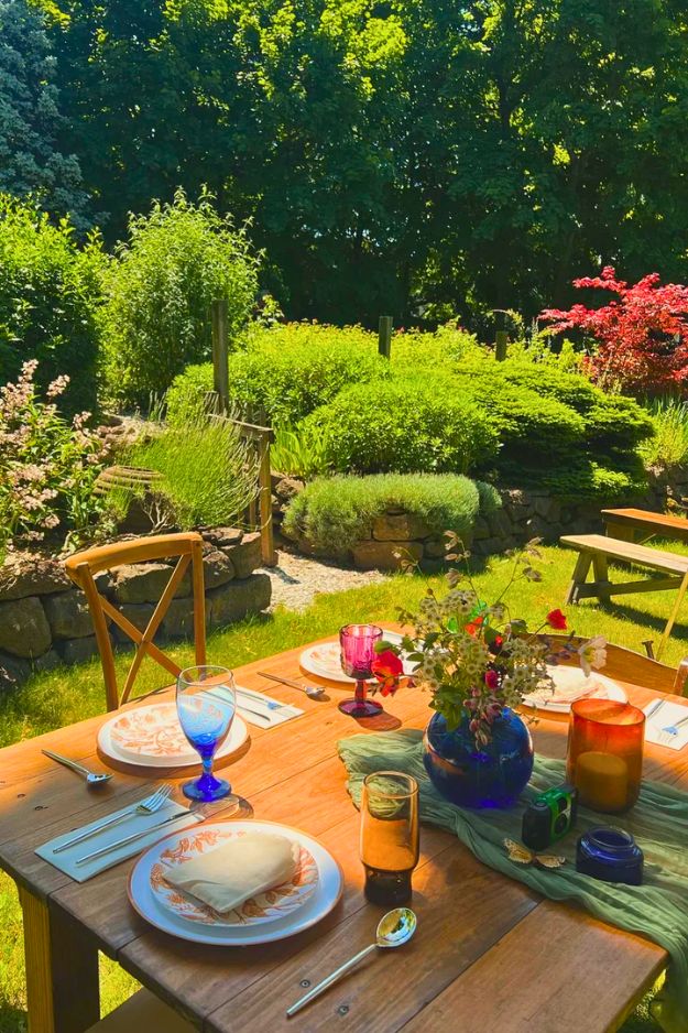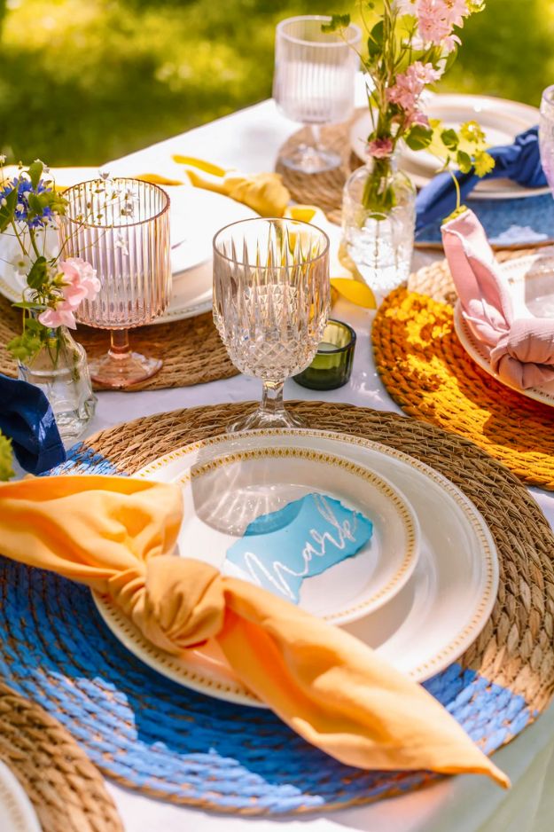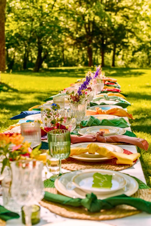 The whole thing feels relaxed but intentional—like a spring garden dinner with your favorite people rather than a formal event.