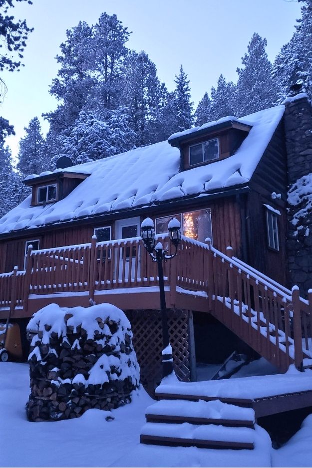 I look at this cabin right before sunrise and immediately feel that little tug in my chest that says, yeah… I could disappear here for a while. There’s something about that soft blue light on the snow and the warm glow from inside that makes the whole place feel safe in a way real life rarely is. If Colorado ever wants to adopt me, I wouldn’t fight it.