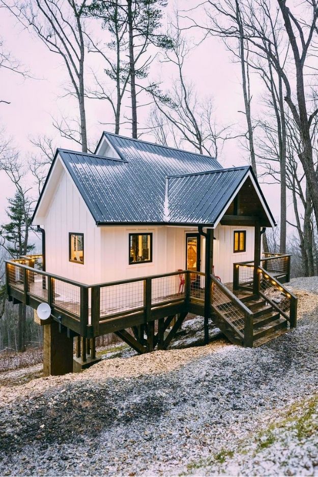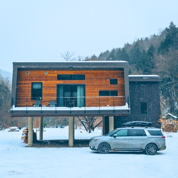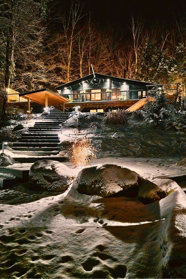This cabin is so amazing, honestly. The whole place sits up on stilts because the snow here can get really high, and somehow that just makes it look even cooler. It feels like a modern hideout dropped right into a winter storm, the kind of place you’d watch the world go quiet from behind big windows. And knowing Vermont winters, that extra height isn’t just for looks, it’s survival architecture wrapped in cozy vibes. Airbnb link here