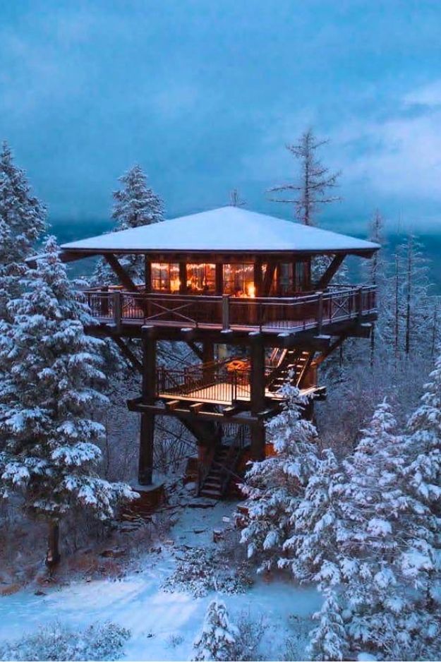 There’s something about old fire lookouts that hits a very specific nerve for me, half adventure, half quiet escape. This one, tucked up above the treeline in Montana, feels like the grown-up version of every treehouse I dreamed about as a kid. The height, the wraparound view, the way it sits just above the snow like it’s keeping watch… it’s a whole mood.
