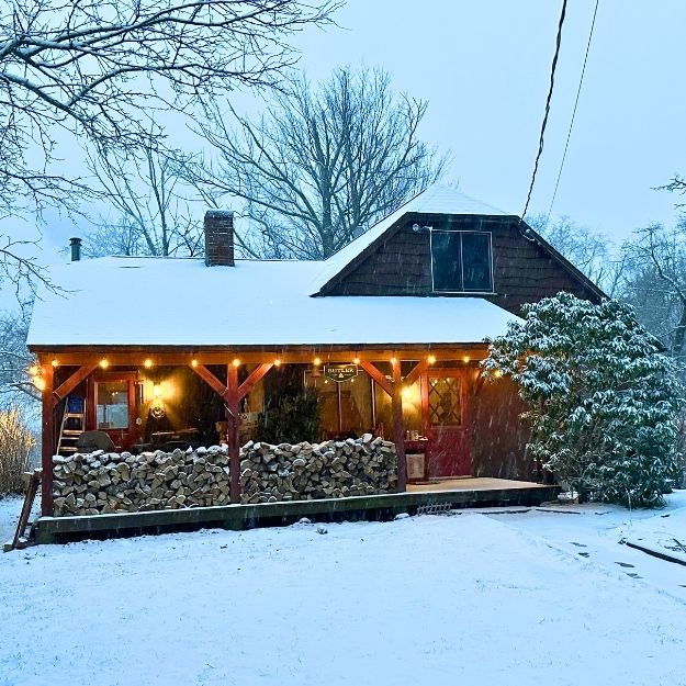This cabin in Fleetwood feels like someone lifted a Christmas card straight off a mantel and dropped it into real life. The lights, the little tree out front, the snow sitting just right on the roof, it’s all so storybook that it almost doesn’t feel fair. I get why people called it dreamy.