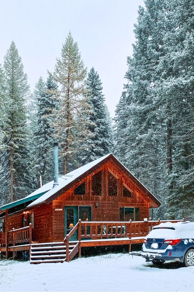 This Montana scene has that perfect “first snow” energy, where everything looks freshly powdered and a little magical but still completely lived-in. I love how the cabin sits quietly against the trees while the Subaru out front tells you this isn’t just a postcard, someone actually drove through the cold to be here, probably grinning the whole way.