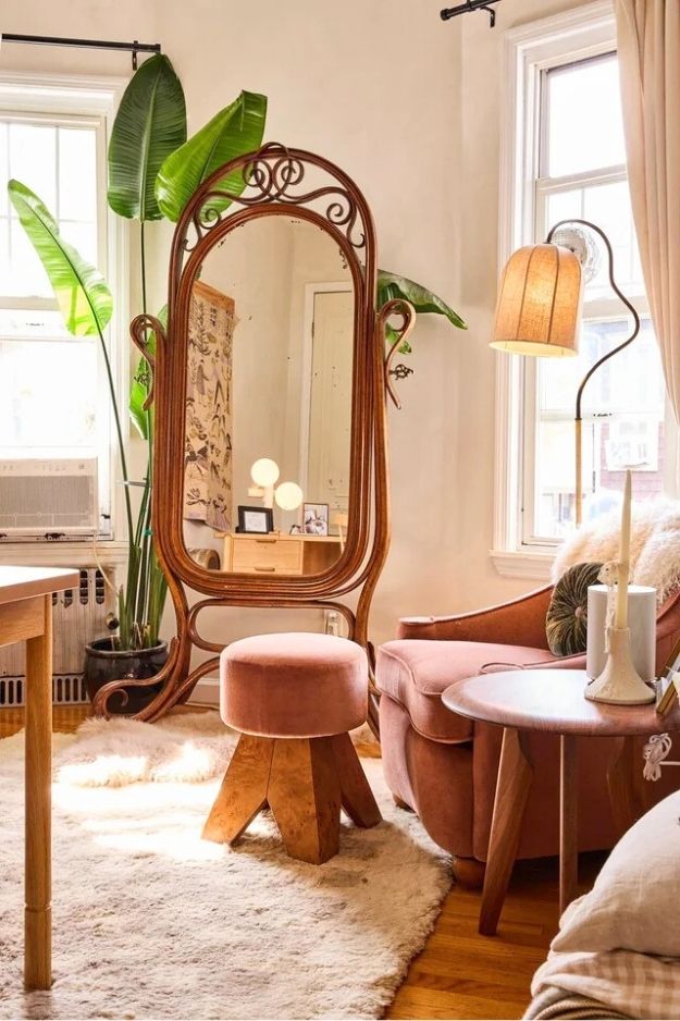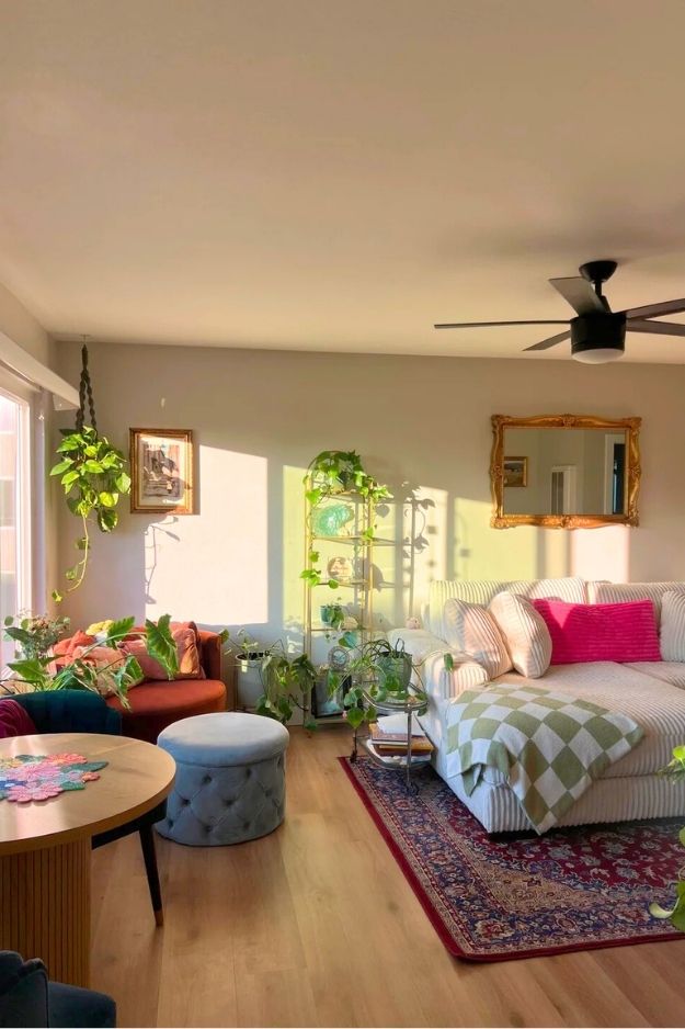 This fantastic apartment belongs to u/lindsey_what. The whole space radiates calm with its creamy neutrals, beige, and soft pinks as the highlights. It’s quite impressive how every fixture and piece of furniture feels collected, not bought all at once.