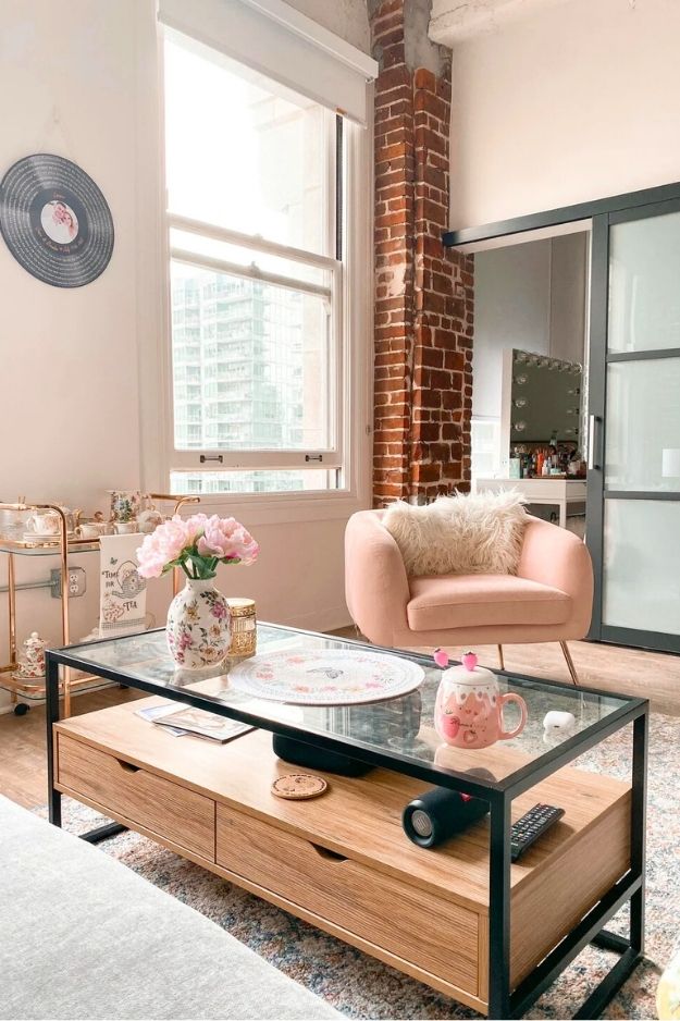 U/gracecarron’s first apartment feels like a perfect mix of elegance and warmth. As a pink lover, I love how she balances feminine touches like the plush pink chair and vintage tea cart with other modern pieces. Everything is just right enough, making it feel like it’s effortlessly curated.