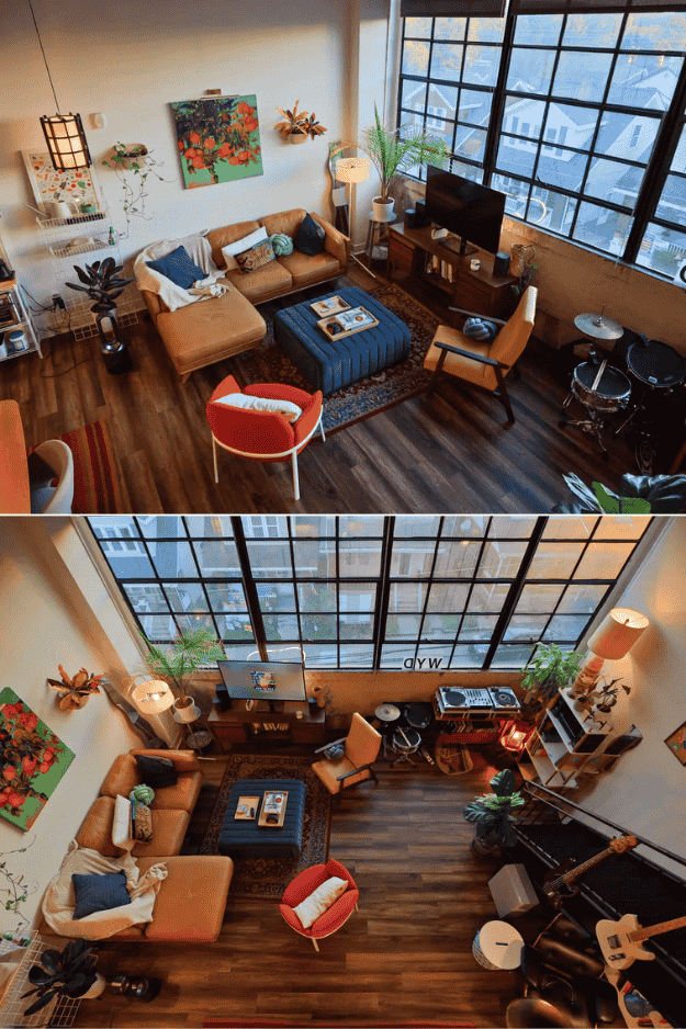 u/Own_Ad_9737’s loft apartment feels like the definition of polished modern living. It’s giving cleanliness, warm sunlight, and just enough characteristics of the owner. What makes me like this place that much is the big window. Even with just a simple setup, the vibe he brings up is luxury, play, and “chics”.